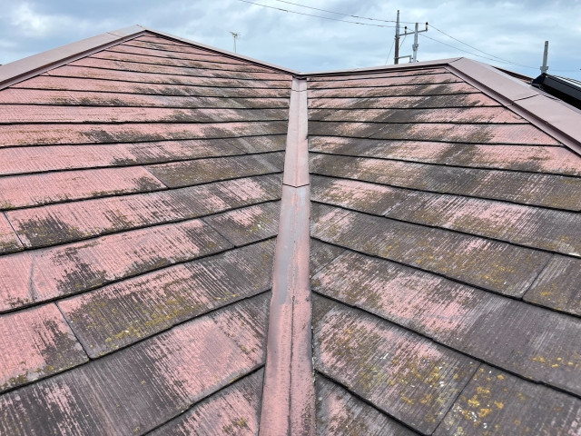 スレート屋根は瓦よりも軽量ですが、屋根材の重なり部分から水が入りやすい特徴があります。積雪後、雪解け水が凍結して流れを止めると、水が逆流し屋根材の隙間や釘穴から内部へ侵入します。さらに塗装劣化で防水性が落ちていると、吸水しやすくなり雨漏りのリスクが高まります。スレート屋根は積雪時の雨漏り相談が比較的多い屋根材です。