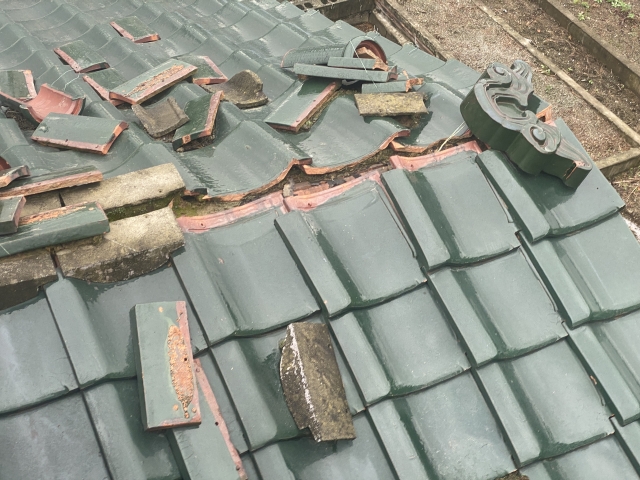 地震の揺れによって瓦が動き、崩れたり落下したりするケースもあります。