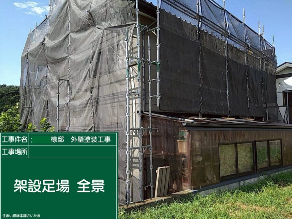 外壁塗装や屋根工事では、安全に作業を行い、細部まで丁寧で高品質な施工を行うために足場の設置が必要になります。また、作業効率を高めるだけでなく、塗料の飛散防止や近隣への配慮にもつながる重要な工程です。