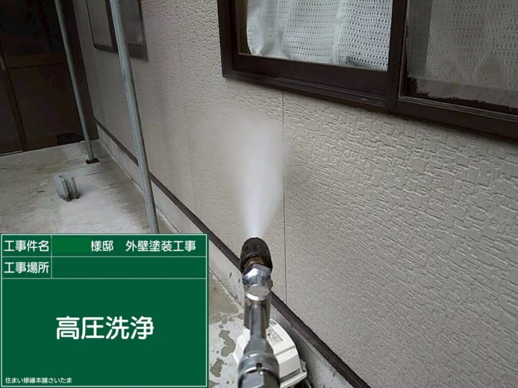 高圧洗浄は、外壁や屋根に付着した汚れやコケ、古い塗膜の粉などを洗い流し、新しい塗料がしっかり密着する状態を作るために行う重要な工程です。