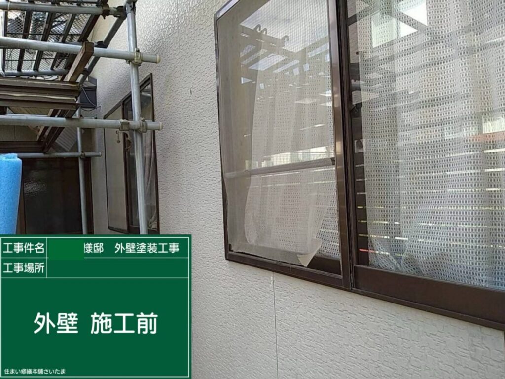 施工前の外壁にはチョーキング現象が見られ、全体的に色褪せも目立つ状態でした。