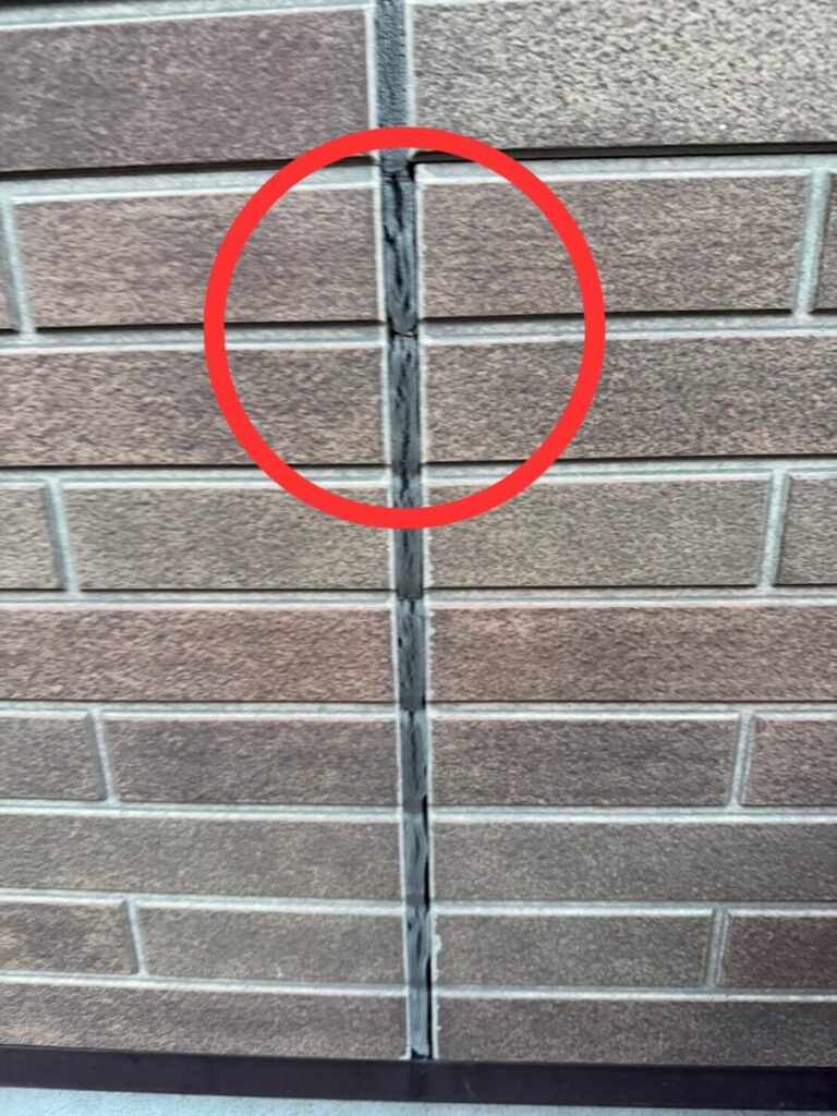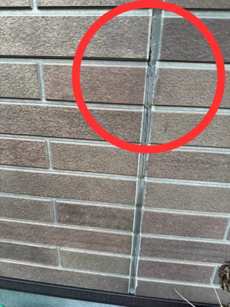 外壁にはレンガ調のサイディングボードが使用されており、各目地部分のシーリング材に劣化が見受けられる状態でした。
